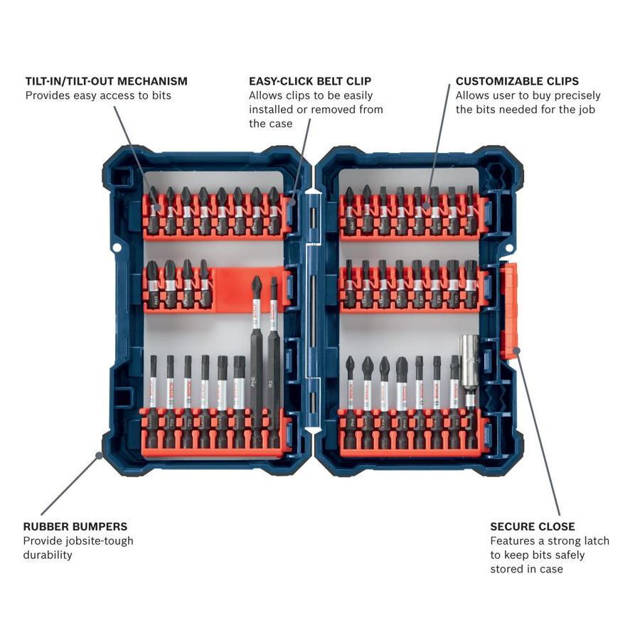 Tilt-in/tilt-out case mechanism – allows easier access to bits
