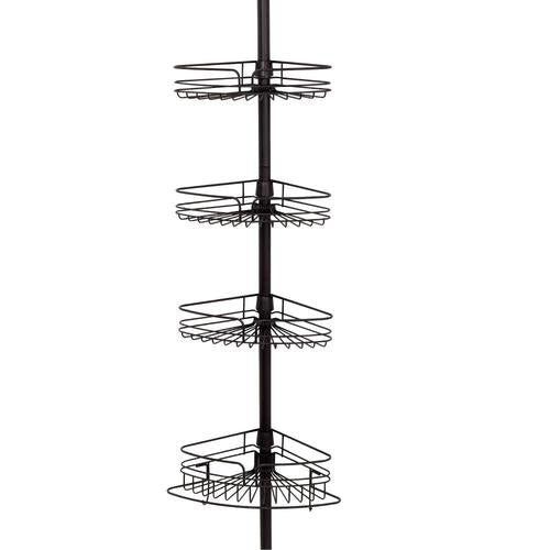 4 adjustable shelves provide plenty of bath item storage in corner of tub or shower
