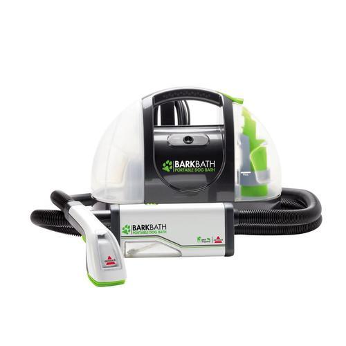 Portable bathing tool connects to BISSELL portable carpet cleaners allowing you to bathe your pet practically anywhere and anytime with virtually no mess