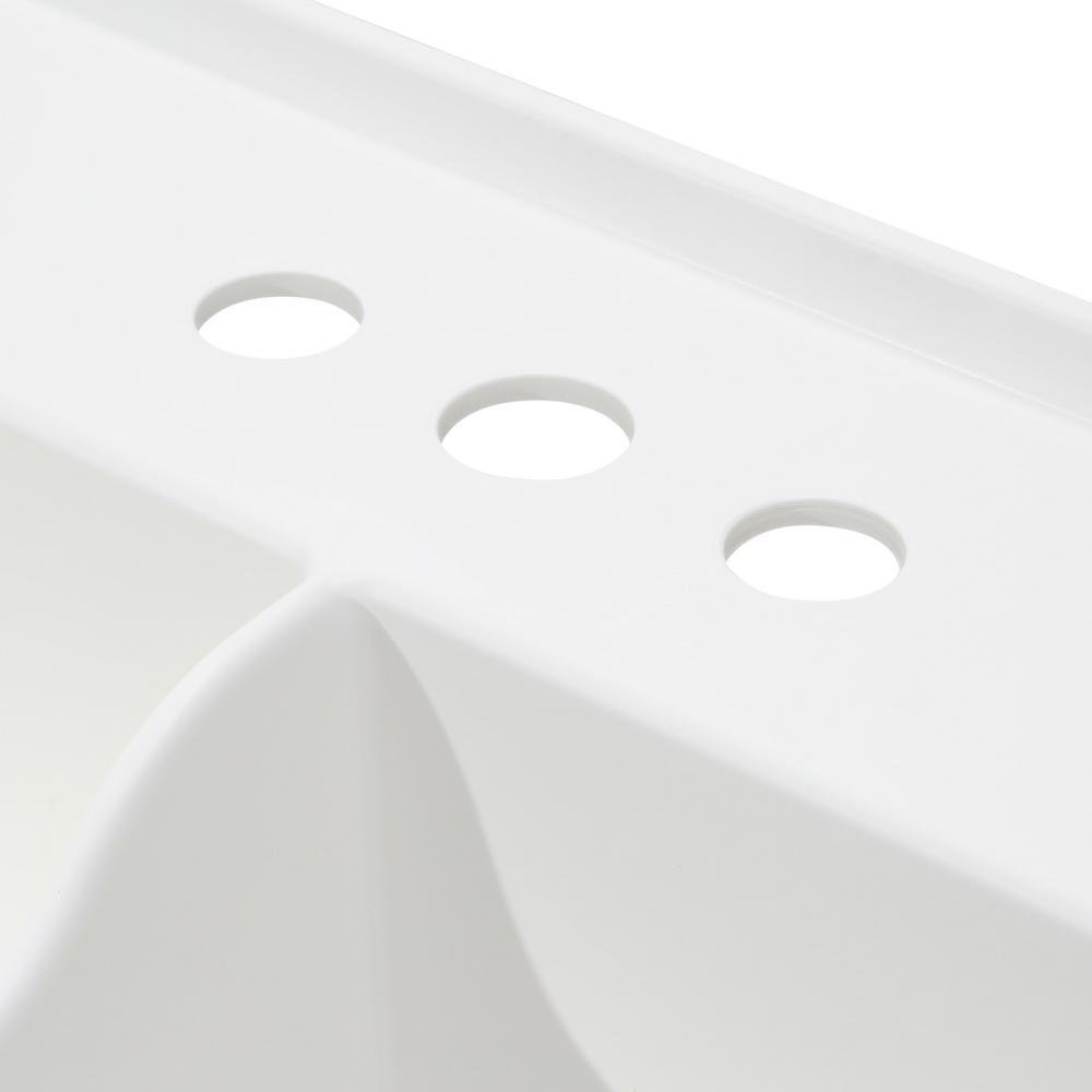 Sturdy, one-piece molded tub made with structural thermoplastic. Heavy gauge steel legs, included levelers and stopper. 13 in. deep, 19 gal. per tub, 40 in. wide. Leak proof 1-1/2 in. integral molded drain, hooks up to standard 1-1/2 in. S or P trap. Accommodates single or dual handle faucet with 4 in. or 8 in. centers. Meets or exceeds codes ANSI Z124.6, IAPMO listed, Warnock Hersey listed. Smooth white surface, rust-resistant, easy-to-install. Preferred by the pros.