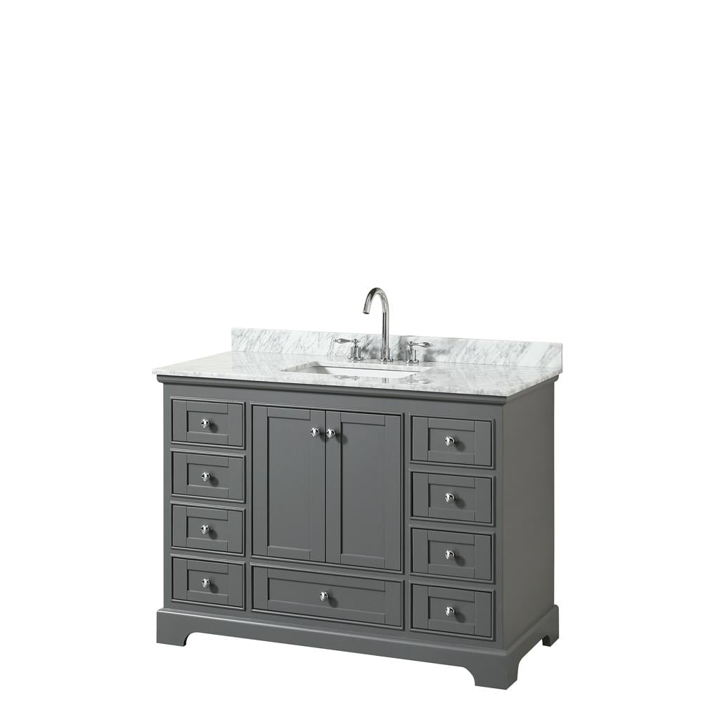 Wyndham Collection Deborah 48-in Dark Gray Single Sink Bathroom Vanity with White Carrara Natural Marble Top