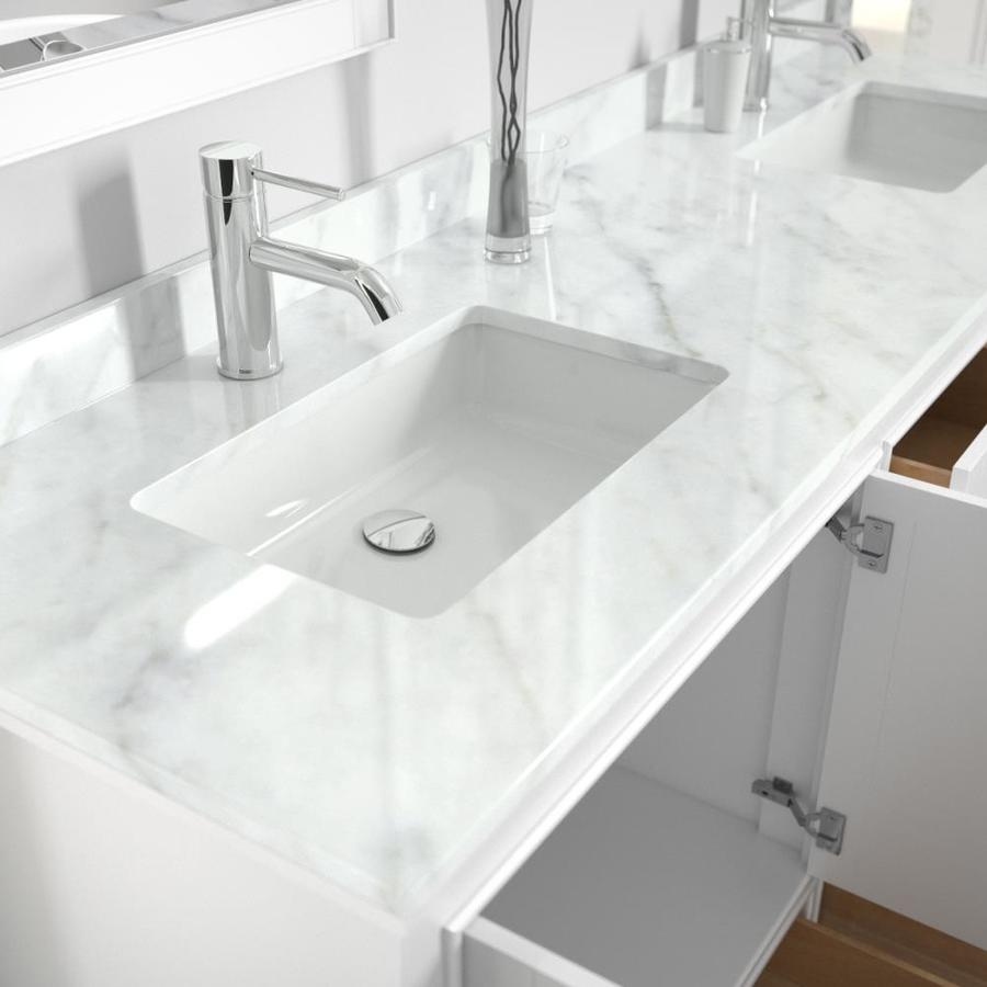 • Premium Countertop: White Carrara natural marble with included 3-inch backsplash
