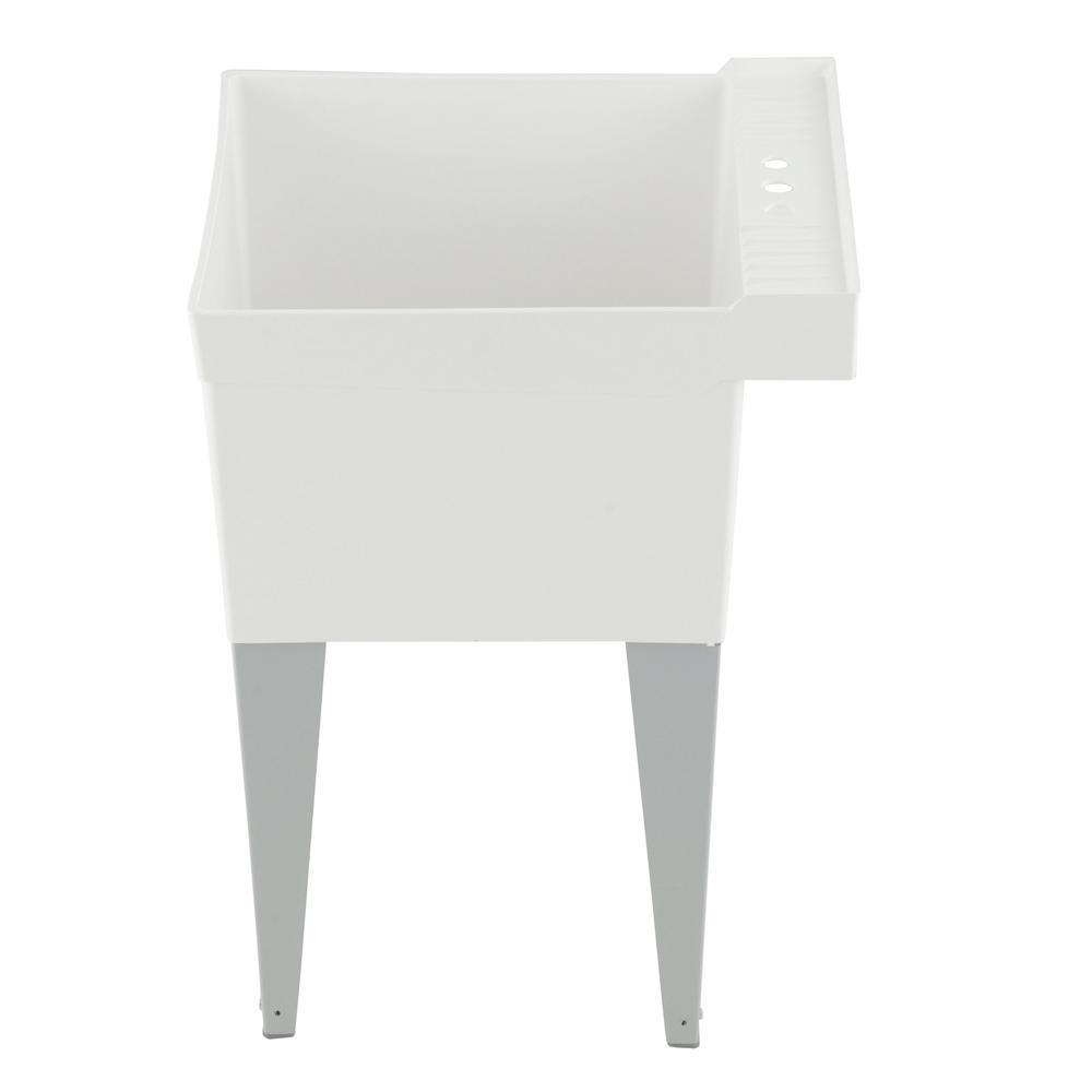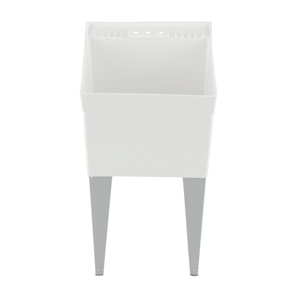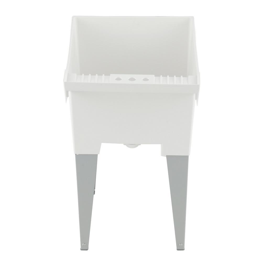 The MUSTEE, E. L. and Sons, Inc. Utilatub 24 in. x 20 in. Structural Thermoplastic Floor-Mount Utility Tub in White features molded, structural thermoplastic construction for long-lasting use and this smooth surface resists rust for easy cleaning to help keep your basin looking new. This large, 18-Gal. capacity, floor-mount tub comes with heavy-gauge steel legs that include levelers for uneven floors to help make your tub stable for your convenience.