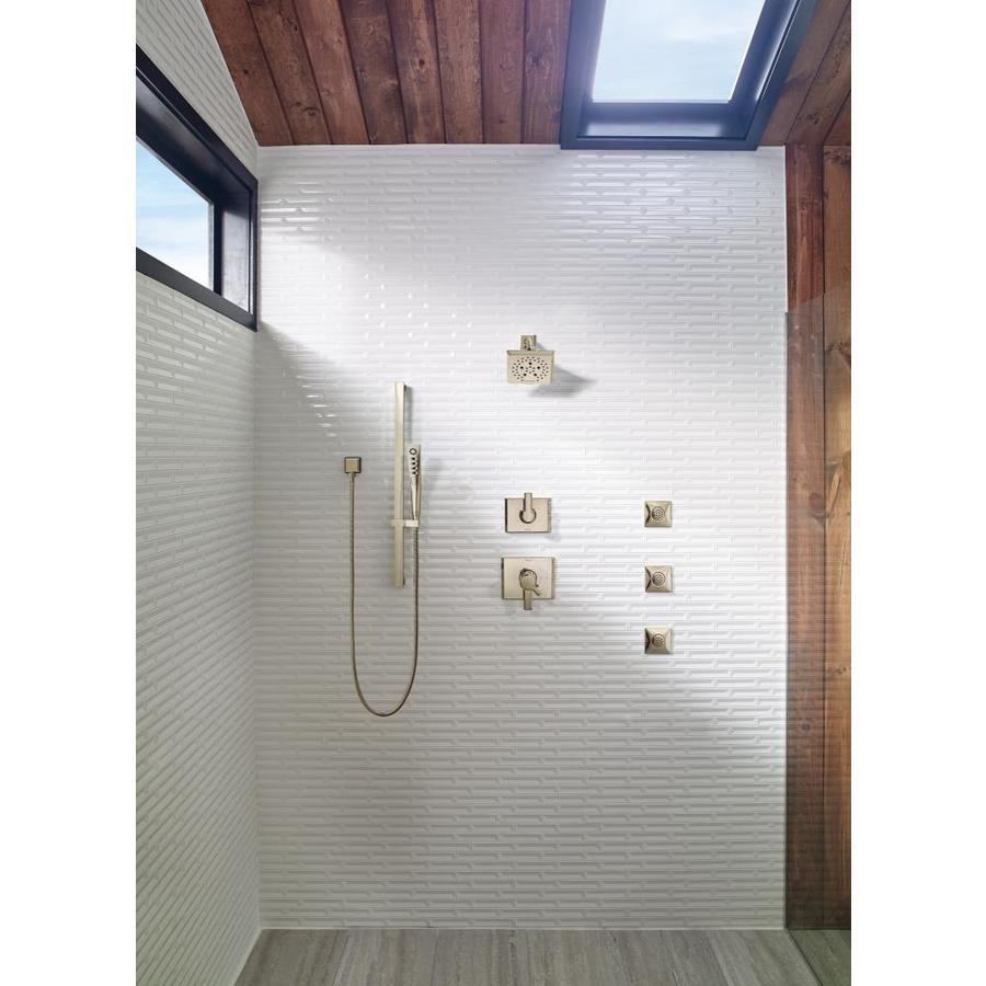 Sleek diverter trim from Delta’s Pivotal collection engineered for 3-port, 6-position control of shower components. Brilliance Stainless finish resists corrosion and pairs beautifully with nickel or stainless fixtures; requires R11000 rough-in valve.