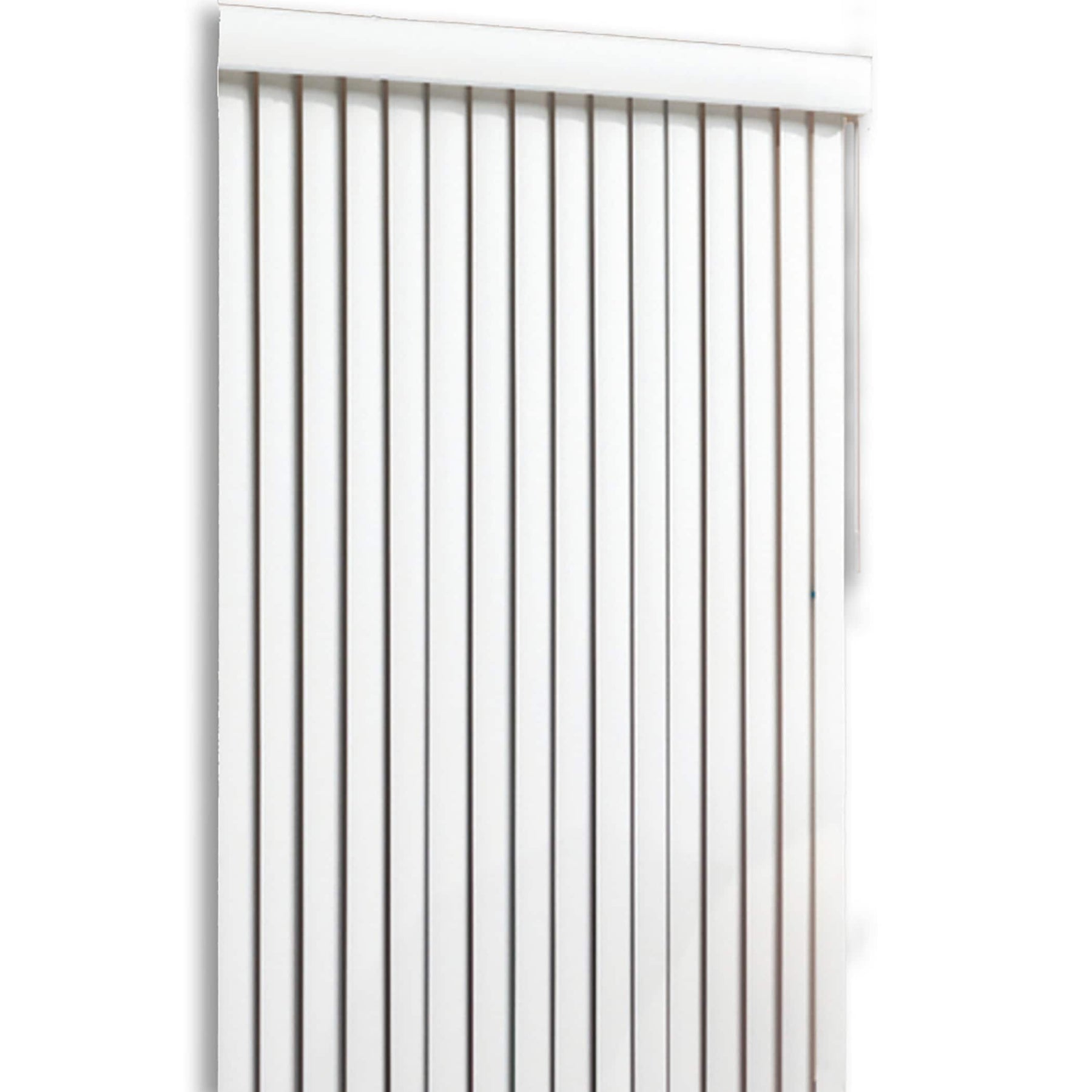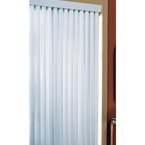 These cordless vinyl vertical blinds by Project Source provide room-darkening privacy for large windows and patio doors. The 3.5-in slats and steel headrail deliver durable performance with a clean white finish, and the included wand makes operation simple and safe for homes with kids and pets.