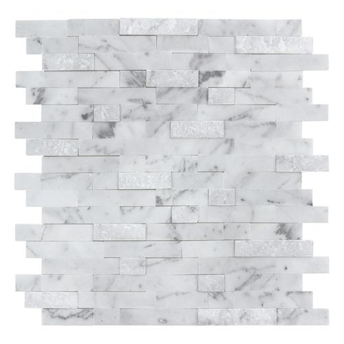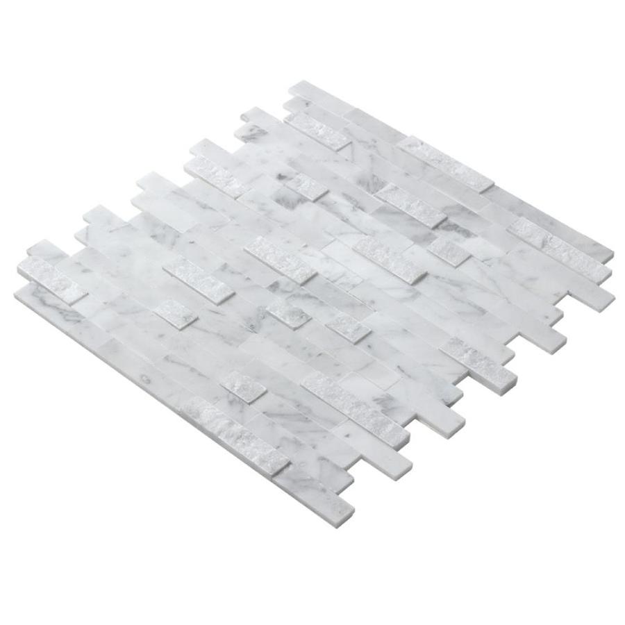 Peel&Stick Mosaics Peel and Stick Stacked Carrara 10-in x 10-in Multi-Finish Natural Stone Travertine Linear Mosaic Peel & Stick Tile