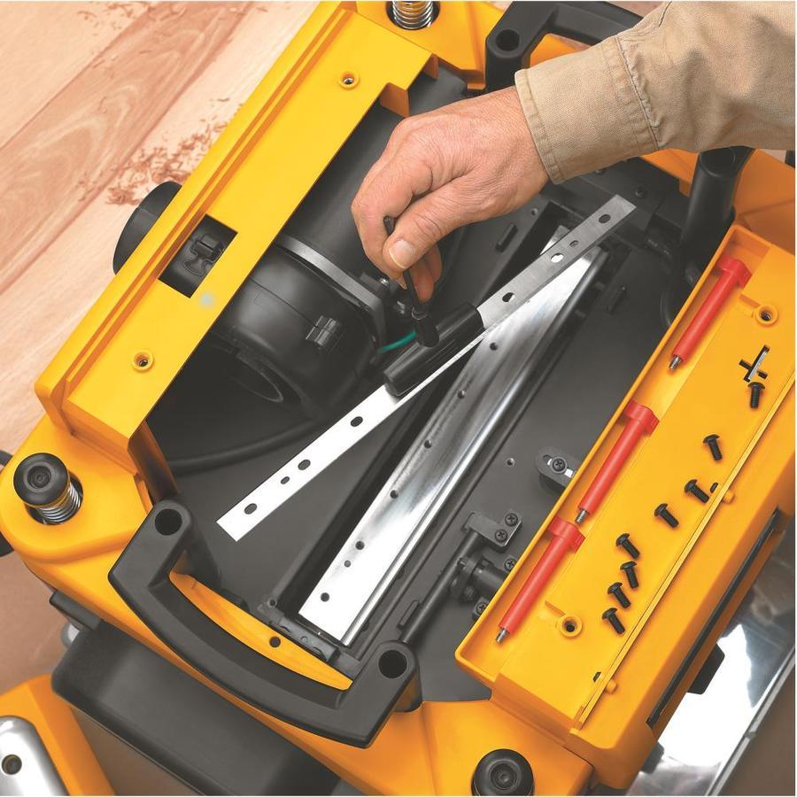 Includes: dust hose adapter, infeed and outfeed tables and an extra set of knives