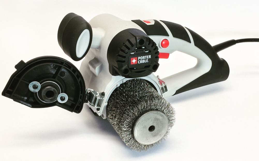 Steel wire wheel for the PORTER-CABLE Restorer tool, designed for grinding, sanding, and polishing. Ideal for cleaning welds, removing rust and coatings, and raising grain on hardwoods while fitting all Restorer tools.