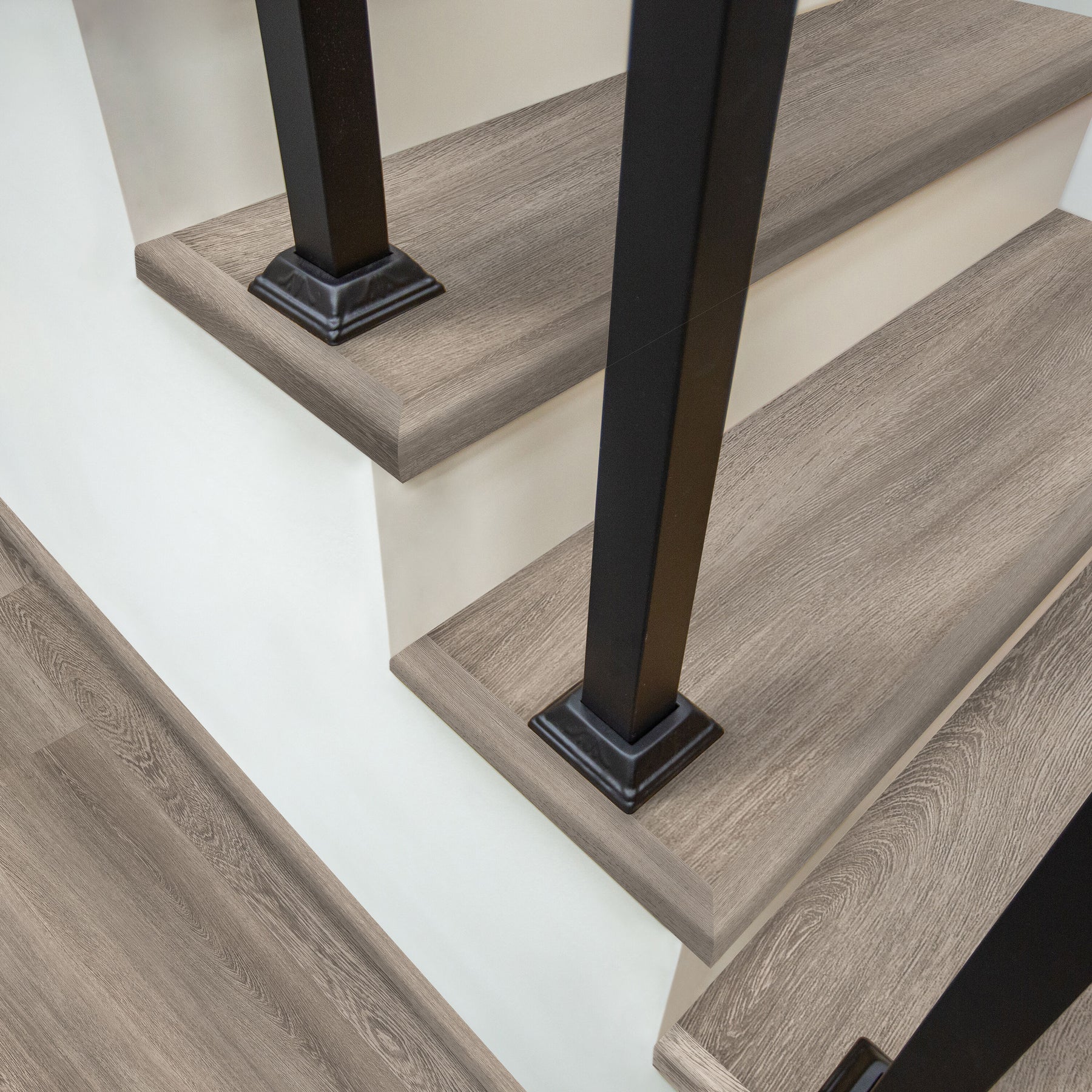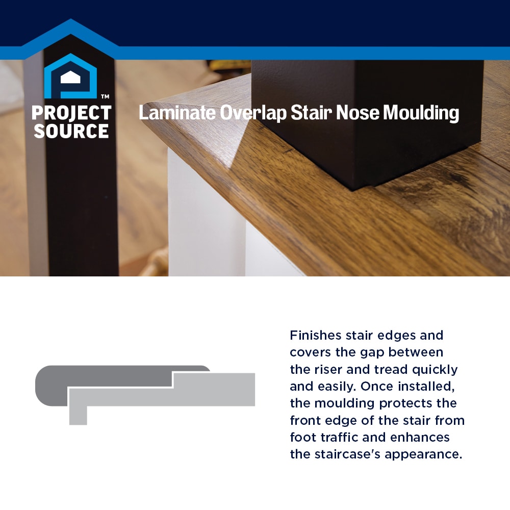 Q: How is this stair nosing installed? A: It is designed to overlap the stair tread and riser; follow the flooring manufacturer’s instructions and use appropriate adhesive/fasteners for laminate stair trim.