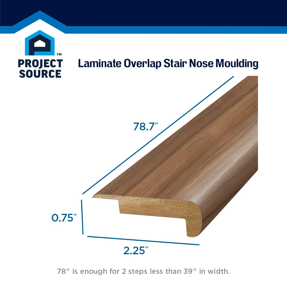 Prefinished laminate stair nosing designed to finish and protect stair edges in the Vailmont Chestnut style. Sized for 78.7-in runs with a narrow 2.37-in profile for clean, durable transitions on stair treads.