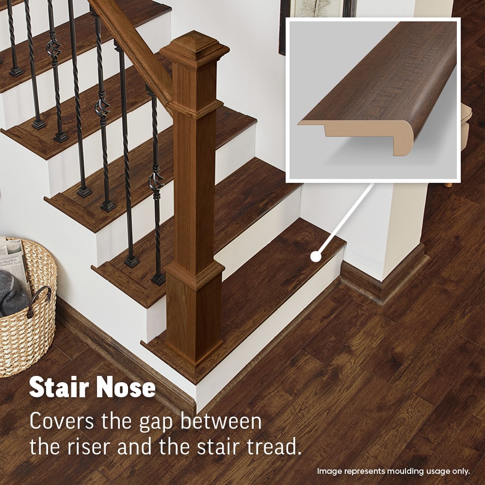 A: It finishes stair edges, protecting the front edge and covering the gap between the riser and tread.