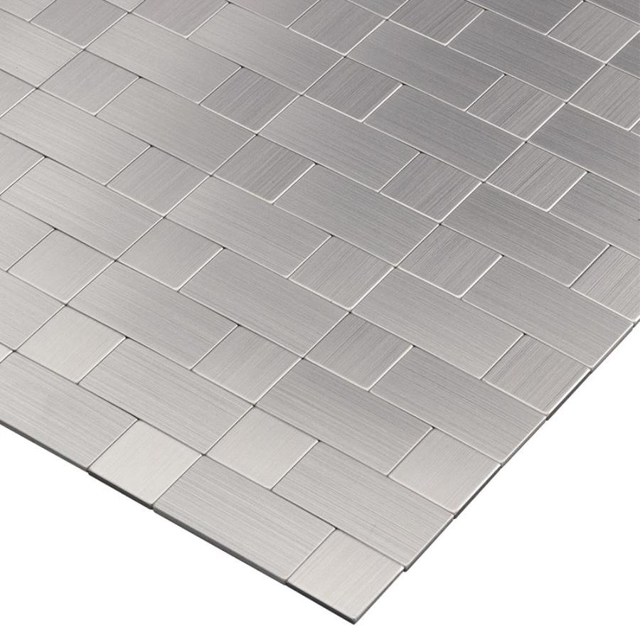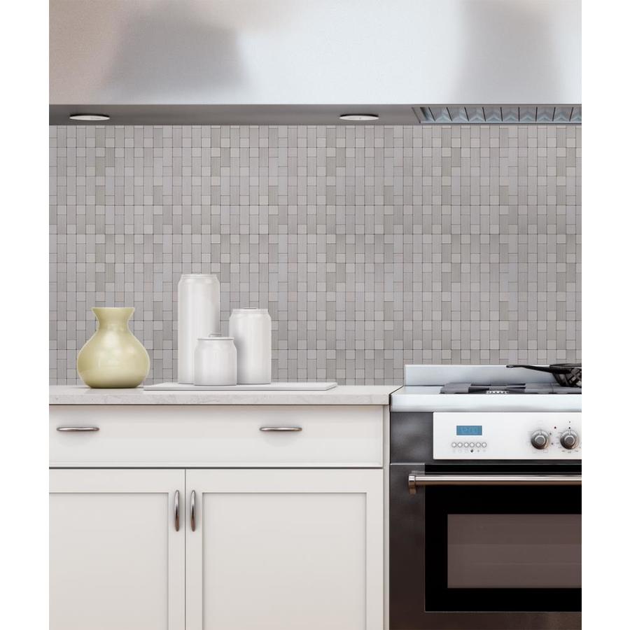 Variations in stainless steel grey color may appear throughout the Peel and Stick mosaic due to lighting disparities