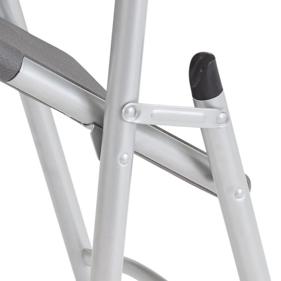 Charcoal slate color chair with silver tone frame Two cross braces for added strength and durability Lightweight for indoor or outdoor use Contoured seat and back for added comfort 300-LB weight capacity 10 Year warranty