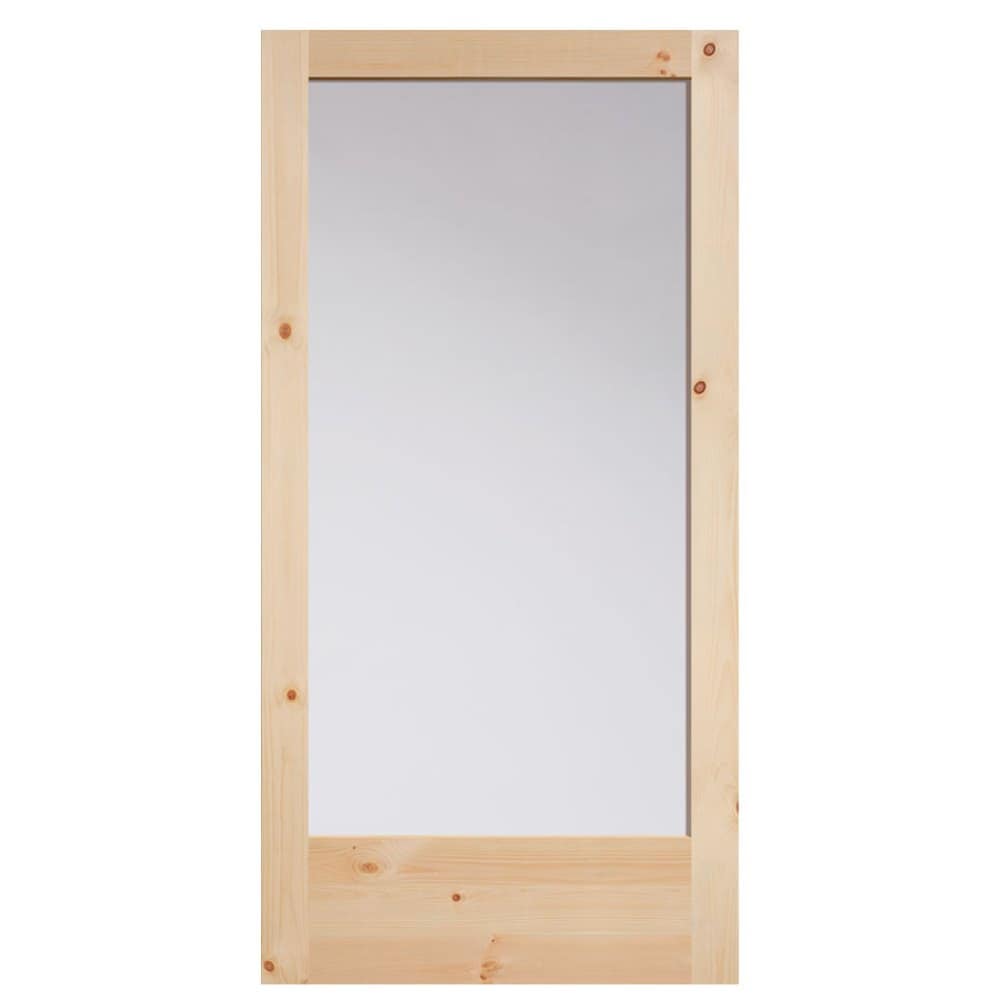 Masonite 42x84 Unfinished Knotty Pine MDF Barn Door with Clear Glass