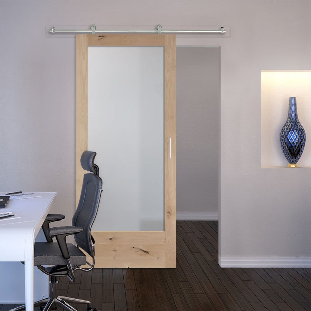 Bring natural light and timeless style to your home—add this Masonite full-lite barn door to your cart today.