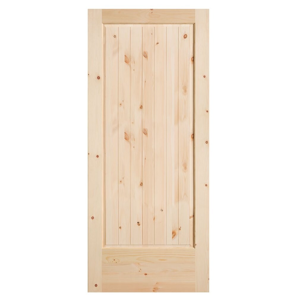 Bring warm, natural texture to your space with this Masonite Traditional barn door. Crafted from solid-core knotty pine and delivered unfinished, it’s ready to stain to match your decor while saving floor space with a sliding installation. Ideal for pantries, closets, offices, and more.