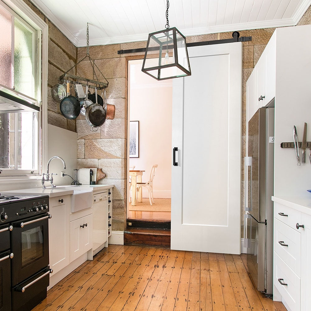 - Matte Black Accents: Durable hardware complements the modern barn door style