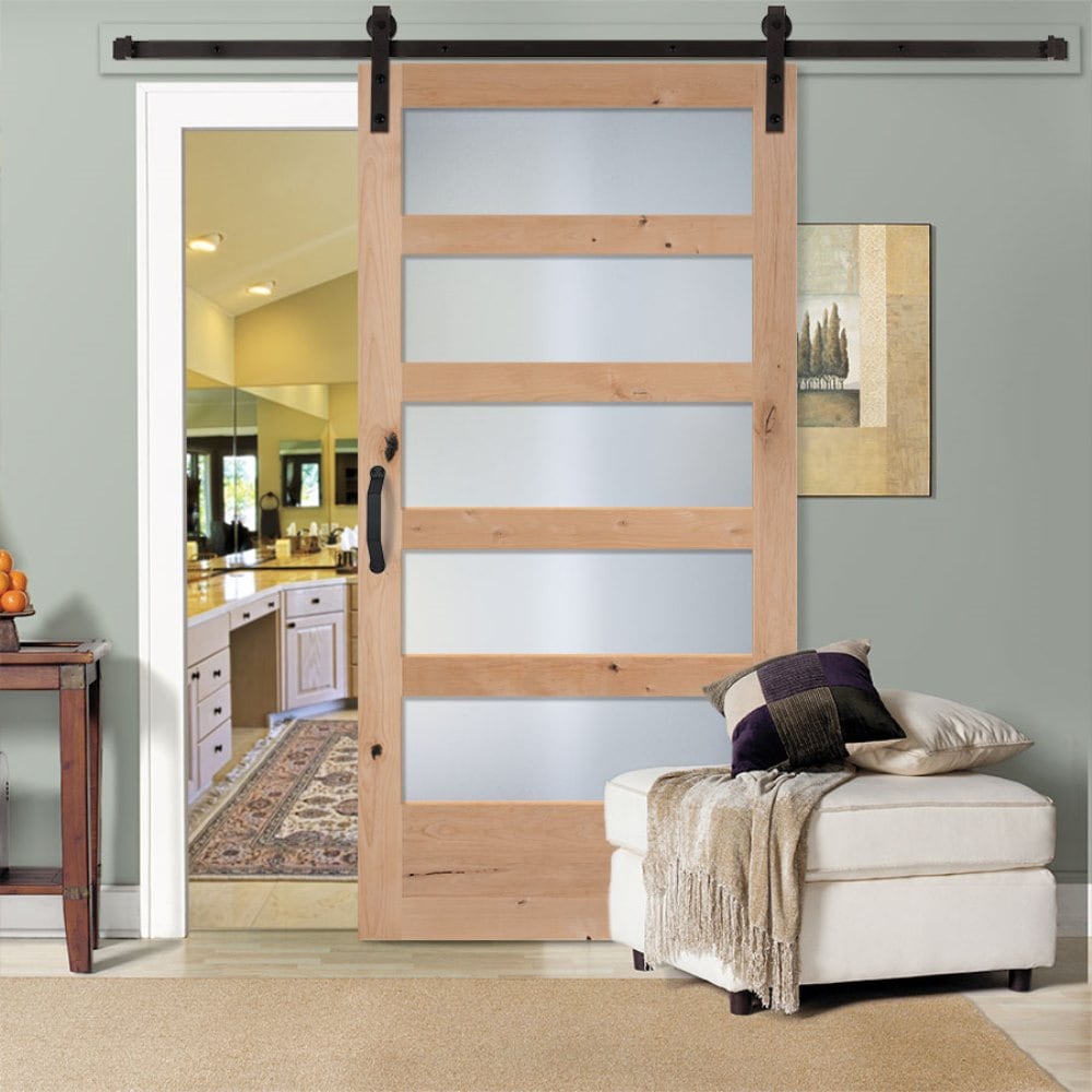 Regular price $1,264.57Unfinished Knotty Alder 5-Lite Frosted Glass Barn Door, 42x84 in