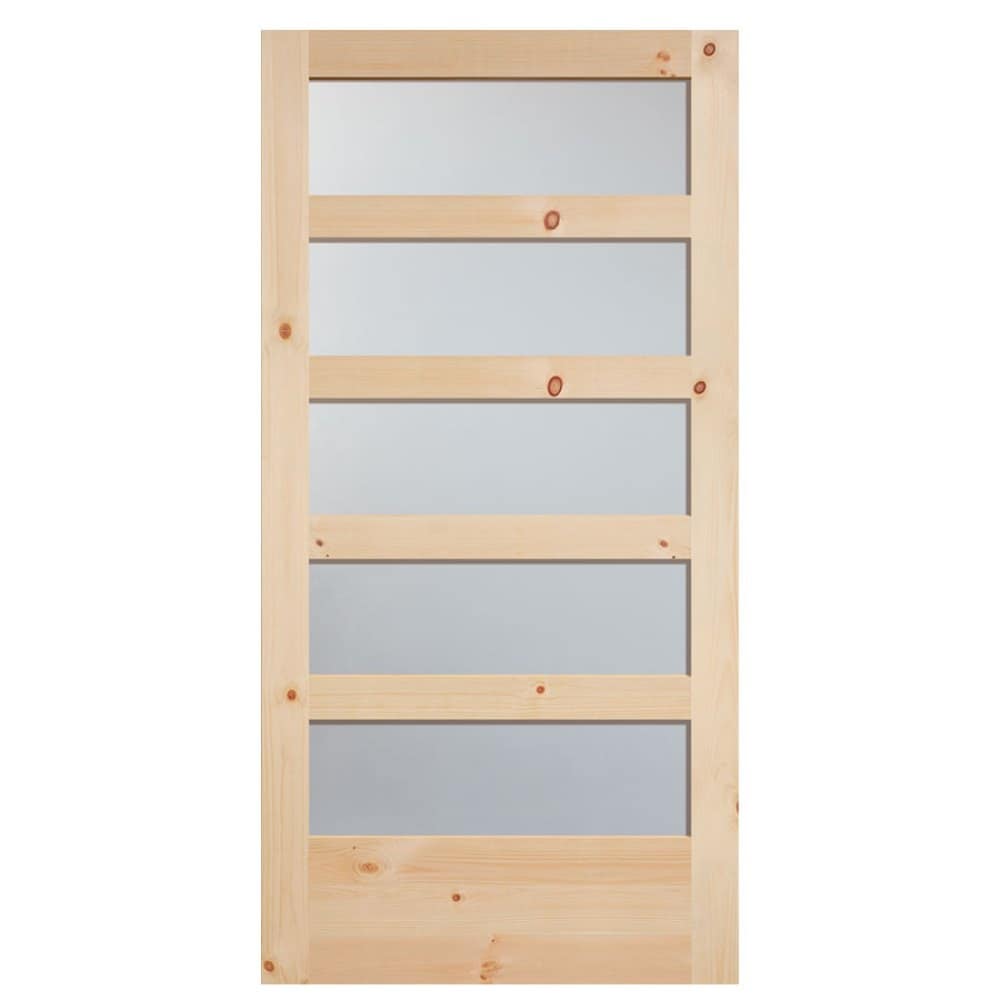Masonite 42-in x 84-in Natural Unfinished Knotty Pine 5-Lite Frosted Glass Single Barn Door (Slab Only)