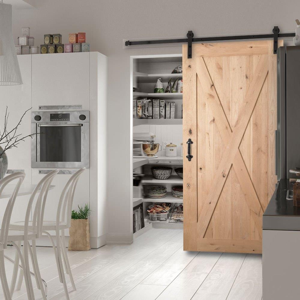 Customize your space with authentic knotty alder—add this barn door to your cart and finish it your way.