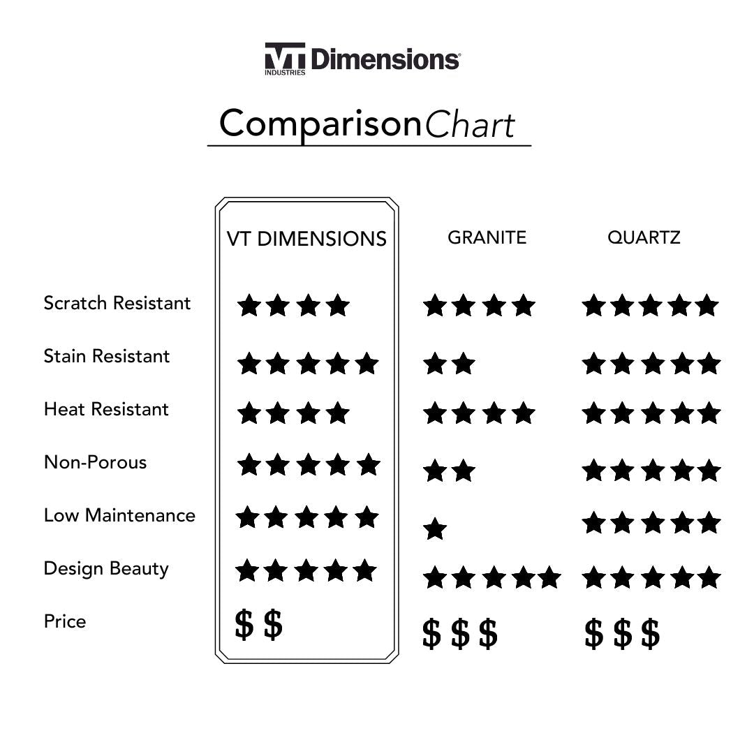 Q: Does it require sealing like stone? A: No. The laminate surface is non-porous and low maintenance—no polishing or resealing required.