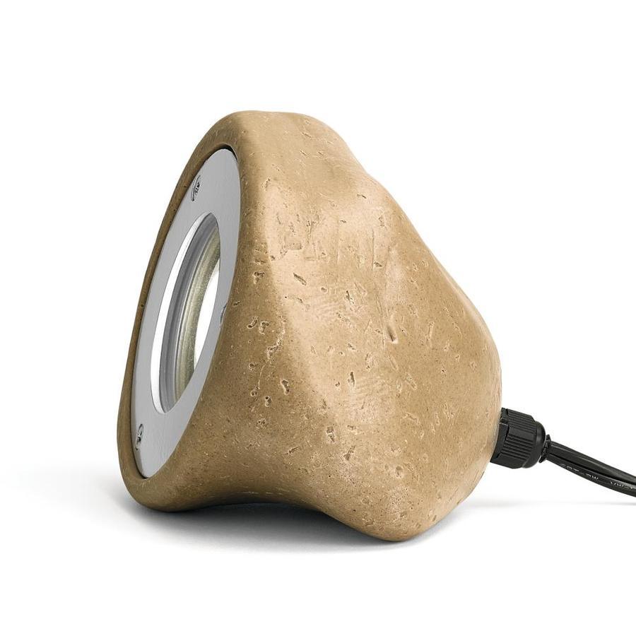 Q: Can the head be adjusted? A: No. The lamp head is fixed; aim the fixture by positioning the rock body.