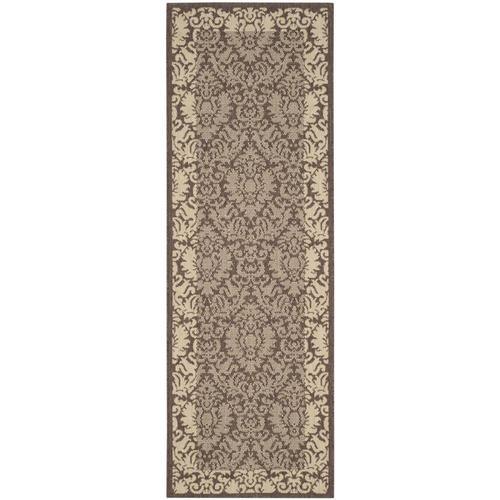 Safavieh Courtyard Nashua 2 x 12 Chocolate/Natural Indoor/Outdoor Damask Coastal Runner