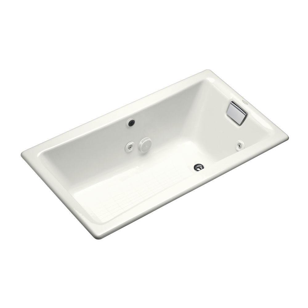 With six Flexjet Whirlpool jets providing an individually adjustable hydro-massage, the Tea-for-Two Whirlpool creates a sensory sanctuary where bathers can relax, rejuvenate and renew. Constructed of durable KOHLER Cast Iron, this model offers versatile installation options and custom pump location. This model is featured in white.
