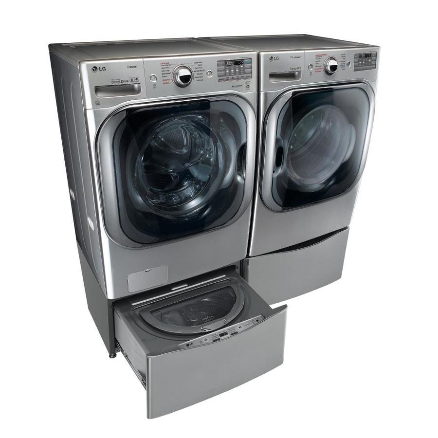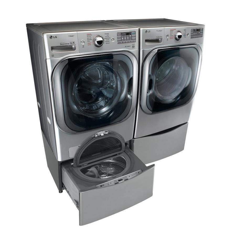 This LG wash is LG Sidekick (WD200CV) compatible, which means you can add the mini pedestal washer to your front load washer and tackle two loads at once