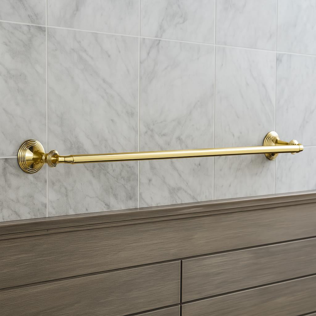The KOHLER Devonshire towel bar combines old-world design with modern functionality, offering a stylish and durable solution for your bathroom. Made from premium brass with a polished finish, it ensures reliability and complements the Devonshire suite of fixtures.