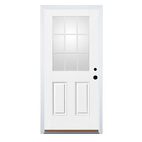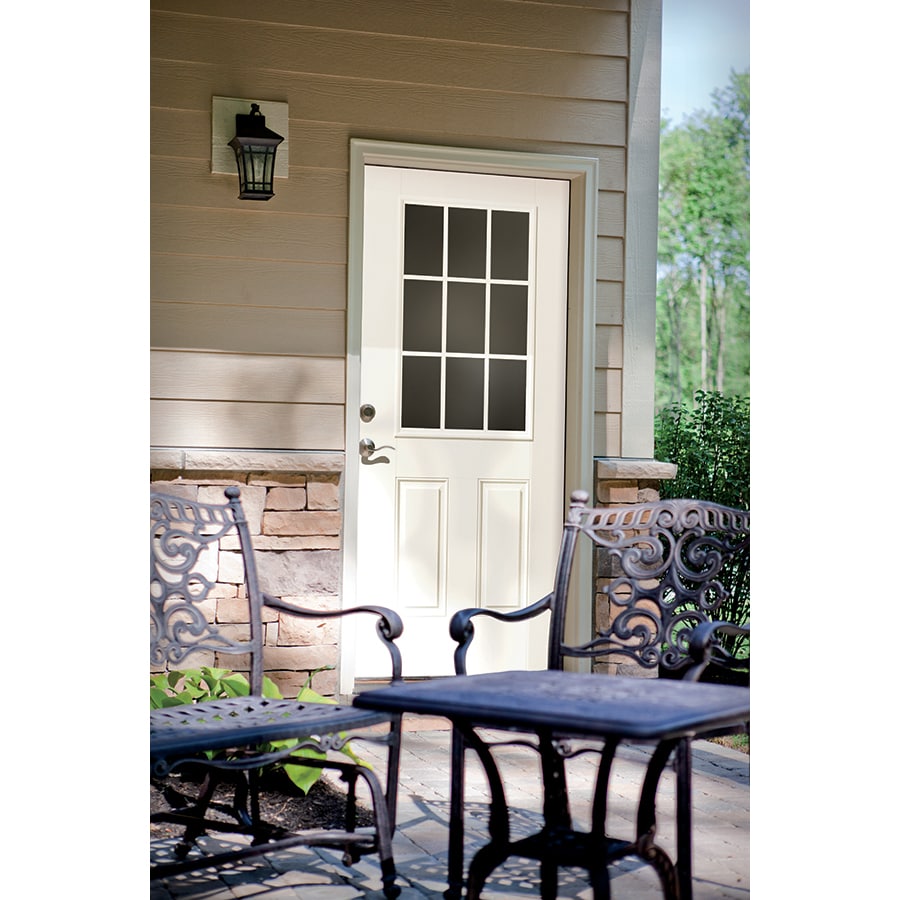 Classic Style: Traditional 9-lite half-glass with deep embossed 2-panel design suits many home exteriors.