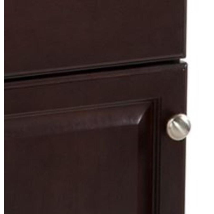 Sturdy Construction: Engineered wood cabinet with stained Java finish and brushed nickel hardware