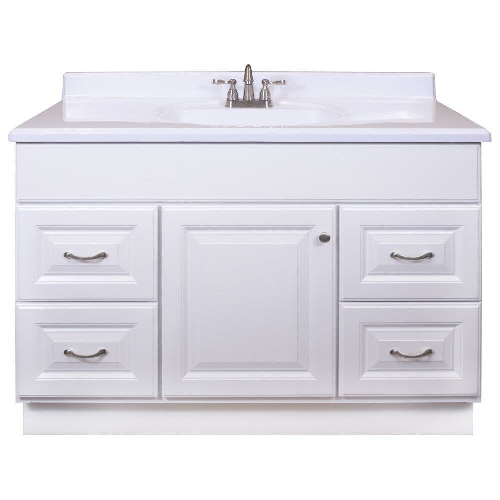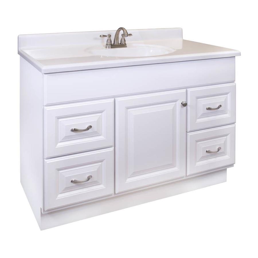 Upgrade your bath with this durable, ready-to-install 48-inch Project Source vanity base—pair it with a 49-in top and enjoy organized, elegant storage today.