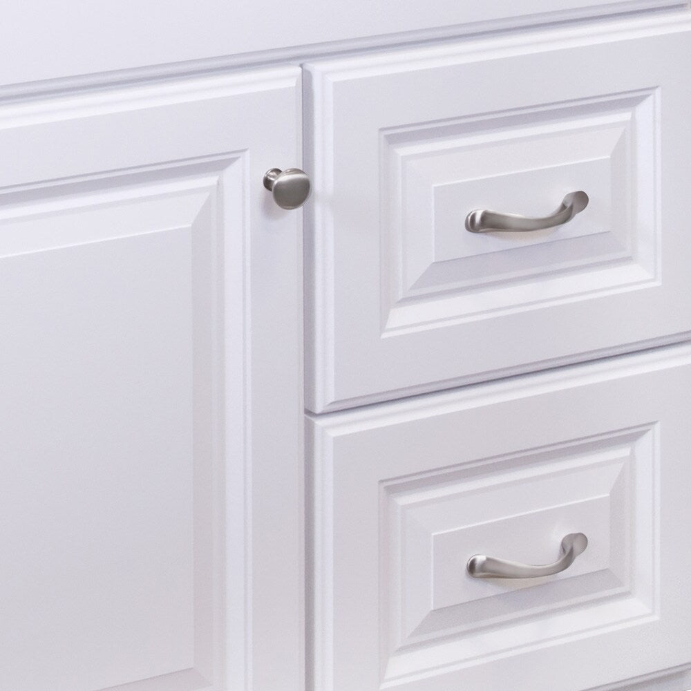 This bright white vanity base infuses the bath with a fresh, tailored presence, grounding the space with clean lines and sculpted paneling. Brushed nickel hardware punctuates the facade, adding a refined shimmer that feels both modern and timeless. Style it with a smooth 49-inch top and a polished faucet to create a cohesive, serene workstation for daily rituals. It’s a smart, sophisticated essential that elevates everyday luxury.