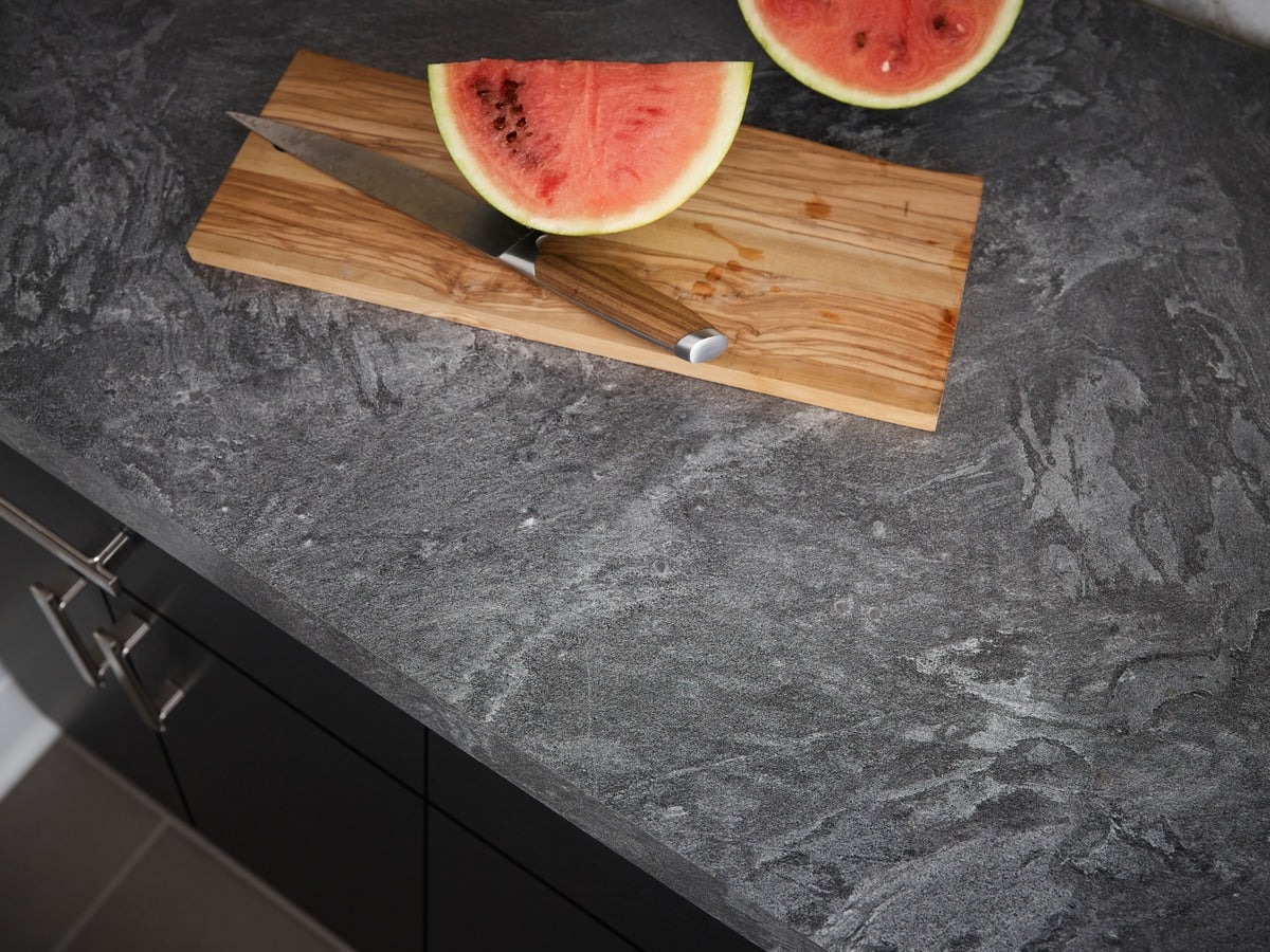 Silver Galaxy Slate invites a moody, mineral richness that transforms countertops into modern sculpture. The tactile matte finish feels refined, while the stone-inspired pattern adds depth and dimension. Pair it with charcoal cabinetry and brushed nickel hardware for a chic, urban kitchen—or contrast with warm woods for balance. This laminate is the effortless path to luxurious, livable design.