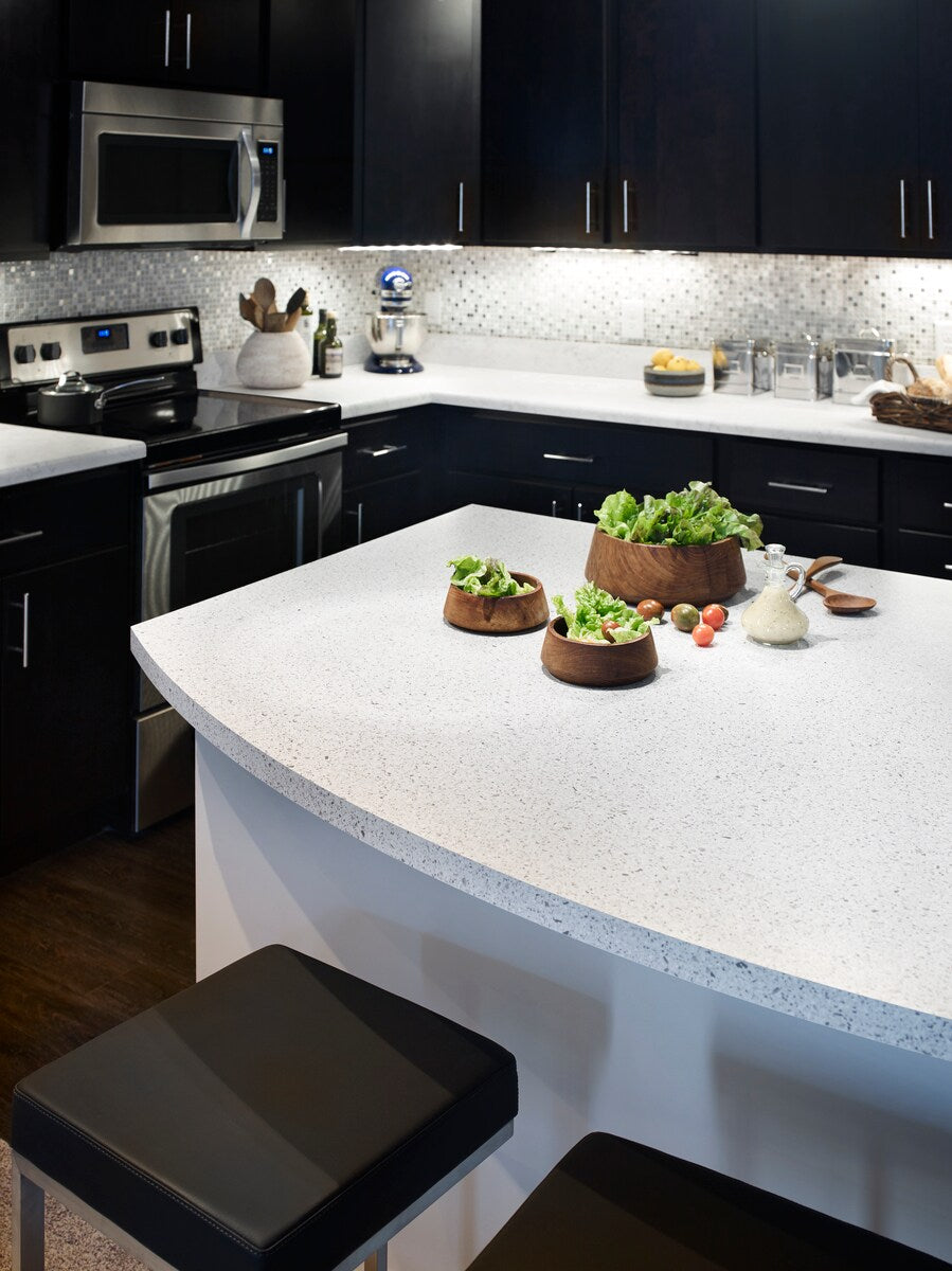Smoked Sea Salt drifts across the surface like a refined terrazzo, lending calm sophistication to modern kitchens and baths. The Artisan finish catches light with a soft, hand-rubbed sheen, inviting touch and everyday use. Pair it with inky cabinetry and brushed steel accents for a crisp, gallery-worthy contrast. Its enduring elegance makes it a staple for luxurious, livable spaces.