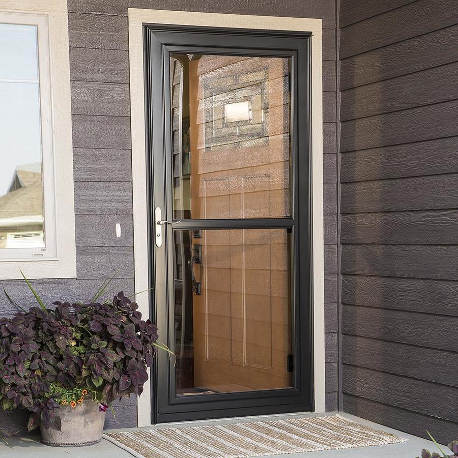 Retractable Screen Away® design converts storm door to screen door, hiding the screen in a cassette at the top of the door