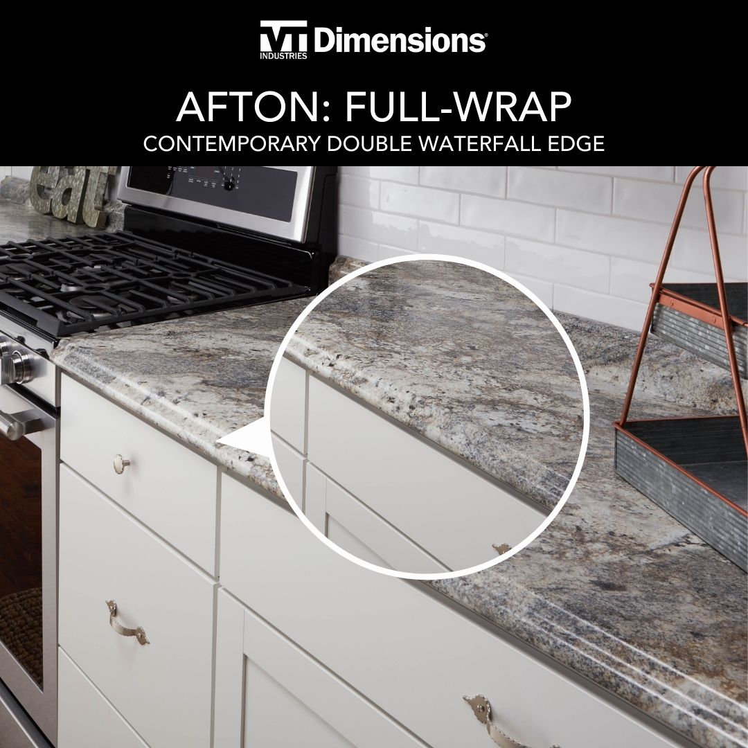 A durable, stone-look laminate countertop in Cafe Azul with an integrated 3-in backsplash and Afton full-wrap edge. Sized at 48 in x 25.5 in x 0.75 in, it offers easy maintenance, scratch and stain resistance, and DIY-friendly installation.