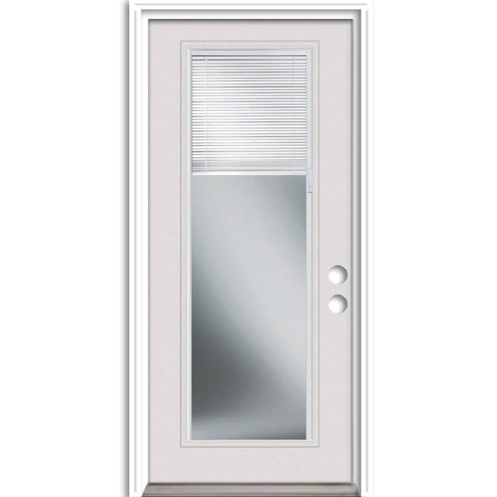 Durable steel entry door with full-lite Low-E glass and enclosed blinds offers a clean, ready-to-paint surface and long-lasting performance. Prehung with brickmould and insulating core, it’s engineered for a precise fit and easy installation for residential entryways.