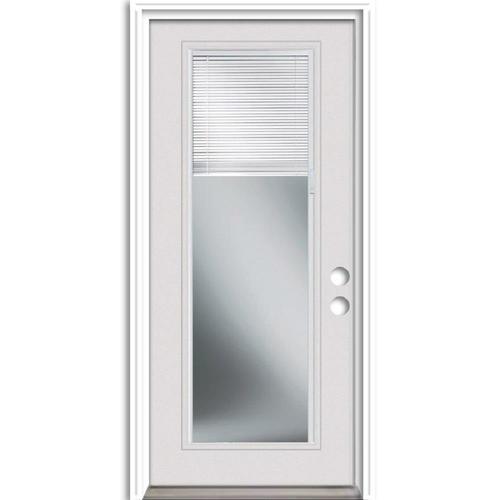 Therma-Tru Benchmark Doors 32-in x 80-in Steel Full Lite Right-Hand Inswing Ready-to-Paint Unfinished Prehung Front Door with Brickmould and Blinds