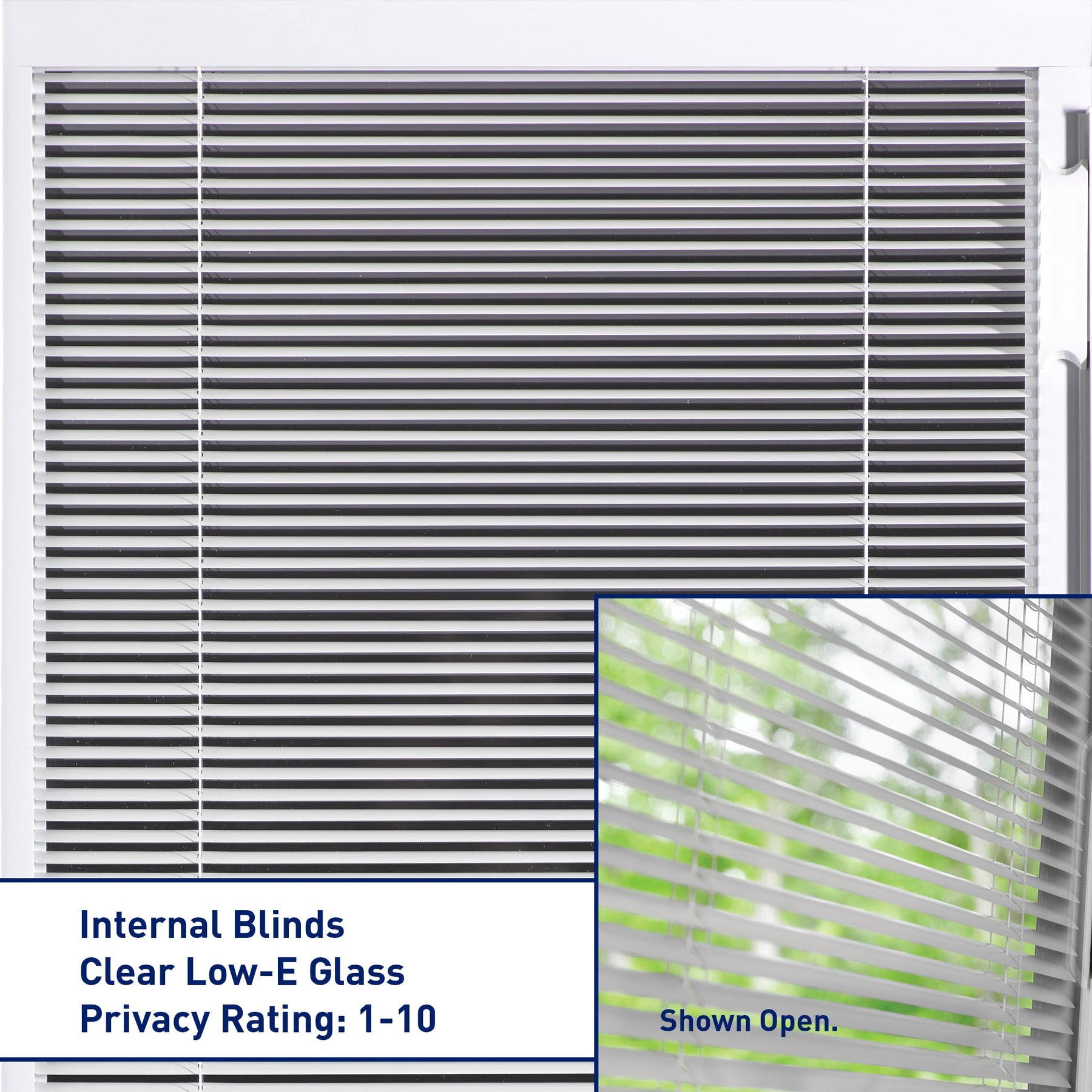 Q: Are blinds inside the glass? A: Yes, the blinds are enclosed between the Low‑E glass panes for easy cleaning and privacy control.