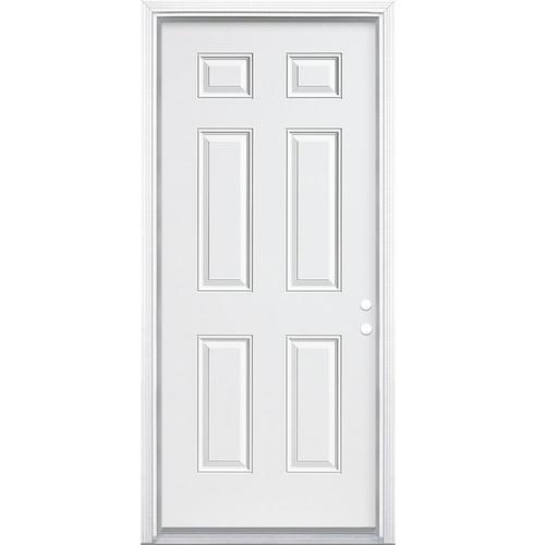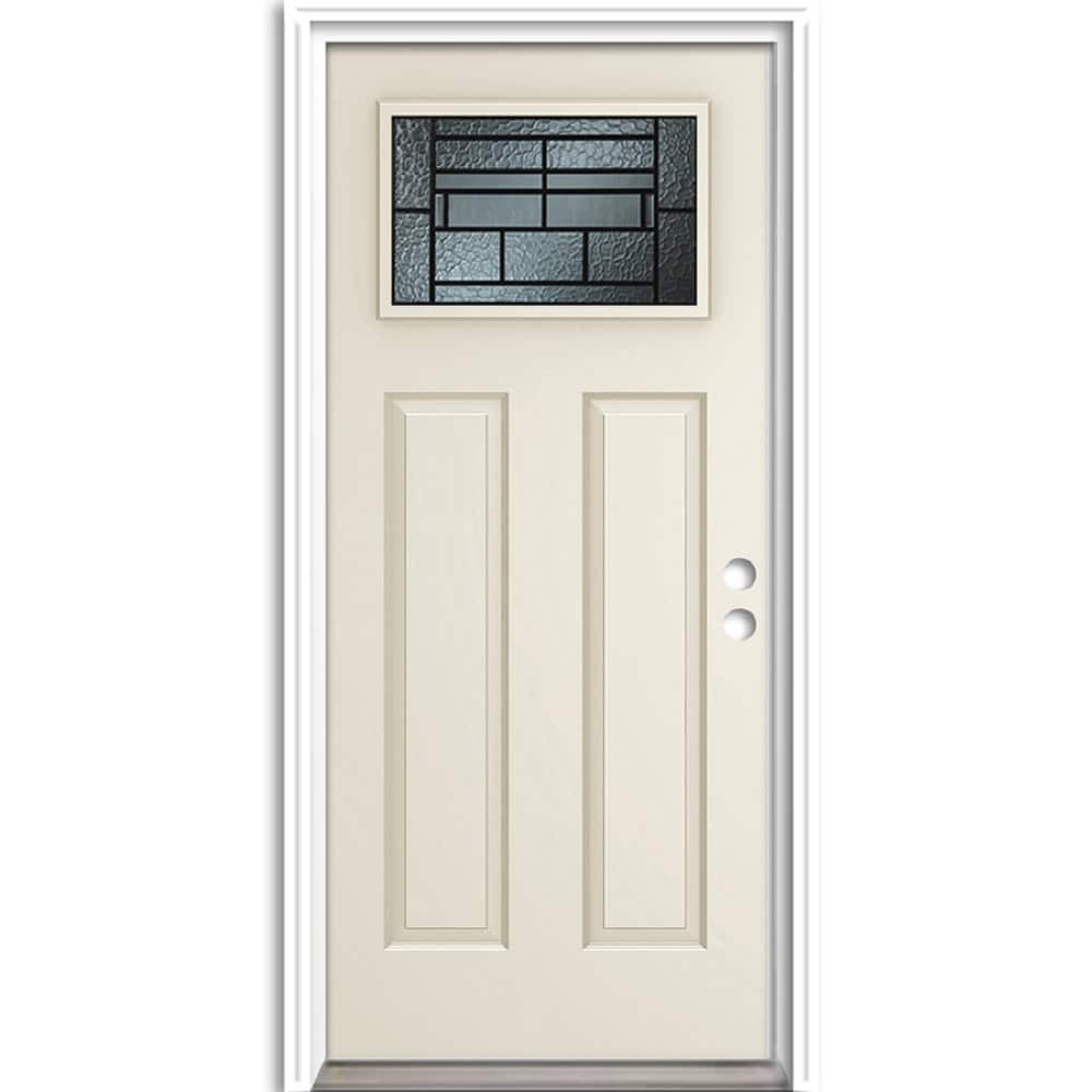 Durable 25-gauge steel prehung front door with insulating core and decorative Craftsman glass. Primed, unfinished, and ready to paint, it includes brickmould and weatherstripping for a precise, low-maintenance fit.