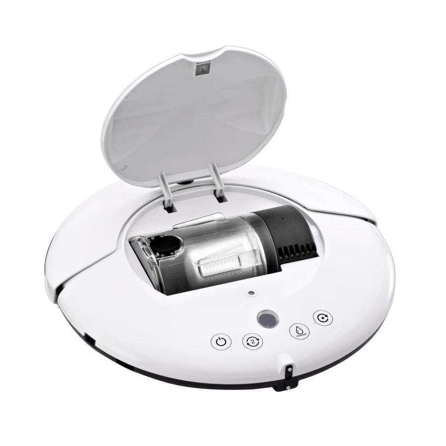 Cyclone technology for stronger suction power Auto re-charge home base included Mop pad included for wet or dry sweeping Climbs up to 1 inch pad or area rugs 2 Side brush for extended cleaning near walls Easy to clean dust bin with filter Double Clean feature Scheduling