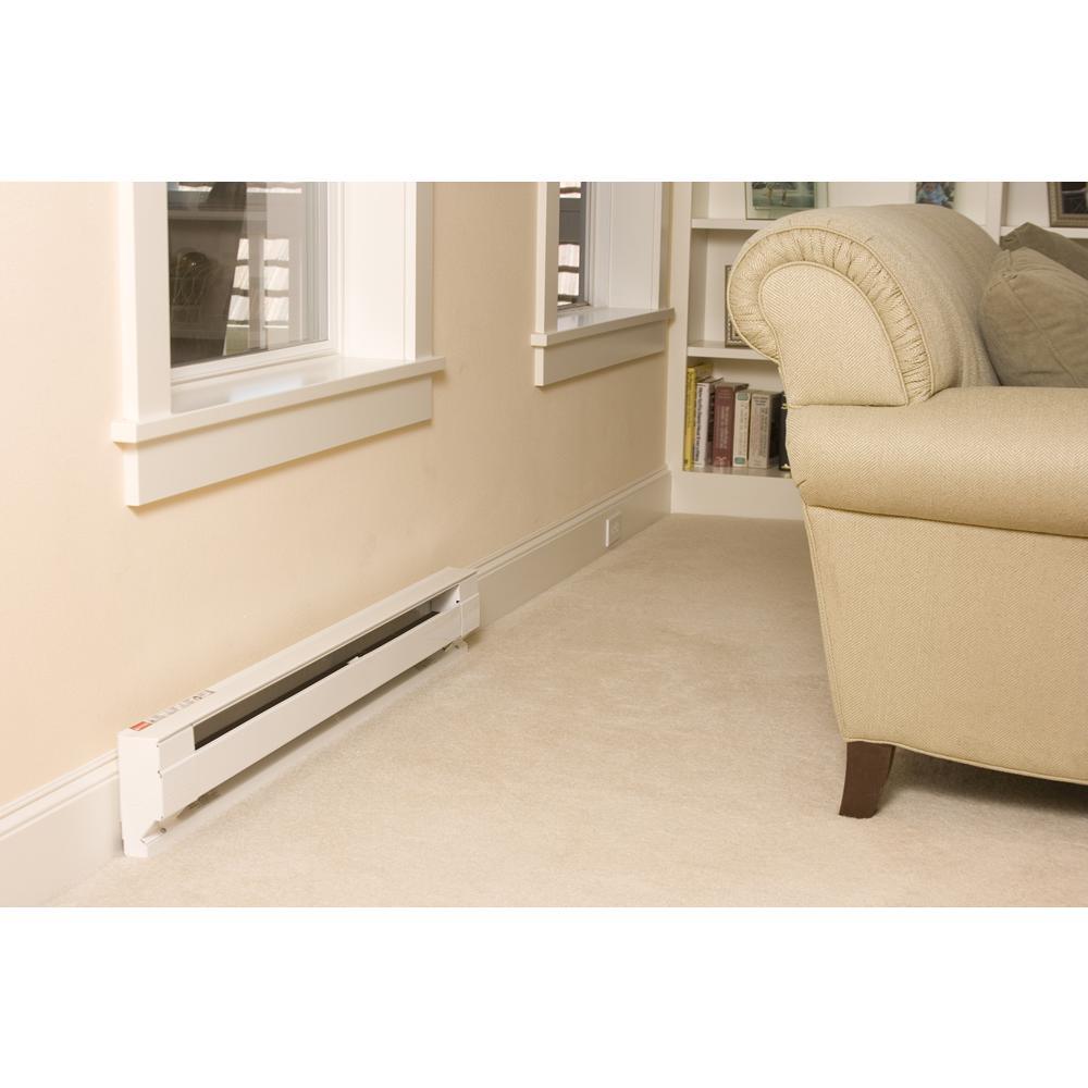 The Cadet Electric Baseboard Heater utilizes convection heat to provide efficient warmth. The quiet operation and low-cost installation make it a perfect choice for a bedroom or any area of your home that requires additional warmth. Designed for ease of installation with pre-punched mounting holes, this hardwired heater can be wired at either end. Rugged U.S.A steel construction with powder coated white paint for a durable, premium finish. A thermostat is required and sold separately.