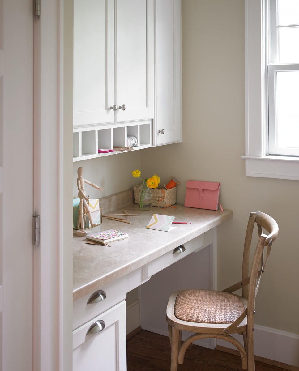 The Travertine Etchings finish whispers the quiet luxury of honed stone, bringing soft, earthy warmth to kitchens and creative nooks alike. Its subtle veining and tactile etchings add visual depth without overwhelming the room. Pair it with crisp white cabinetry and woven textures for a relaxed, elevated look. This laminate is a chic, practical essential for refined, everyday living.
