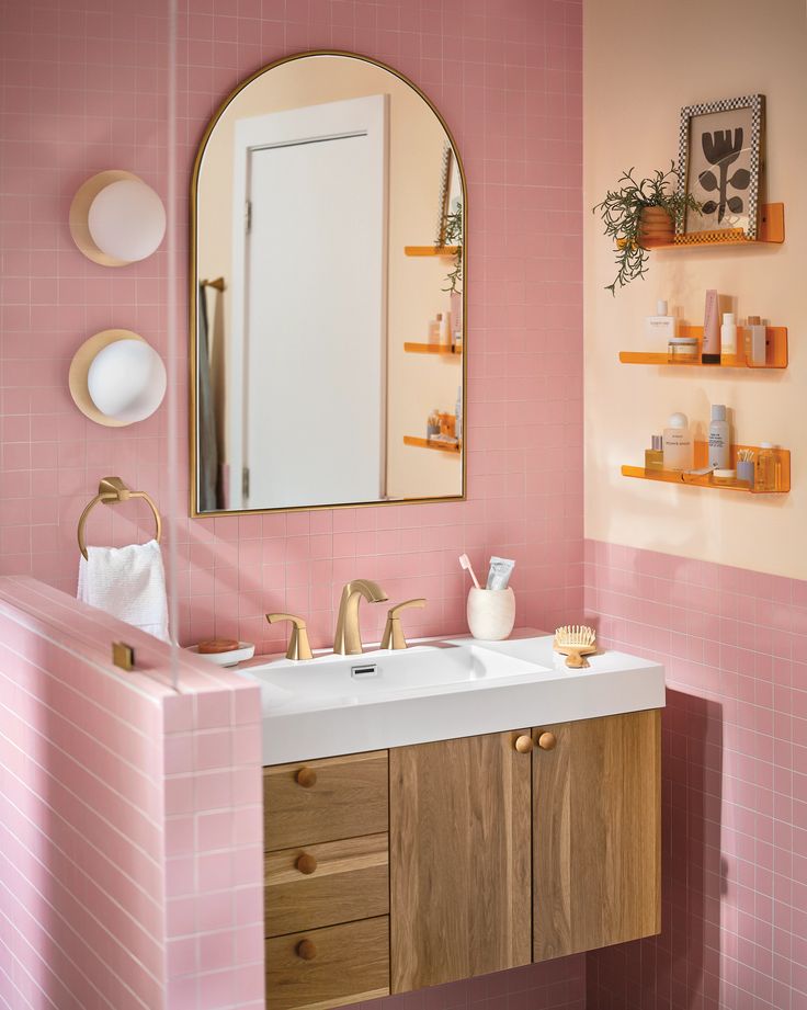 Spot Resist Brushed Nickel finish resists fingerprints and water spots while adding the warm look of stainless to your bath