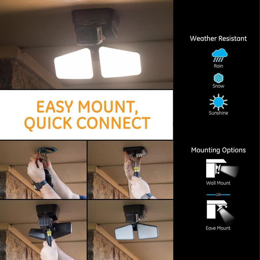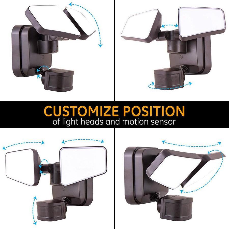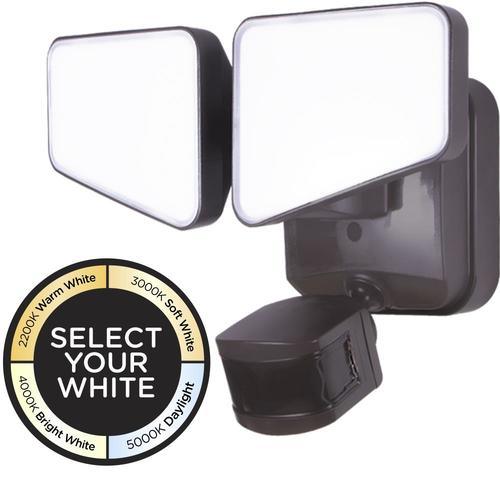 In security mode, when motion is detected the light will come on at its brightest daylight white 5000k, 2480 lumens. The two flexible light heads and 240 ° motion detection area provide diverse coverage options