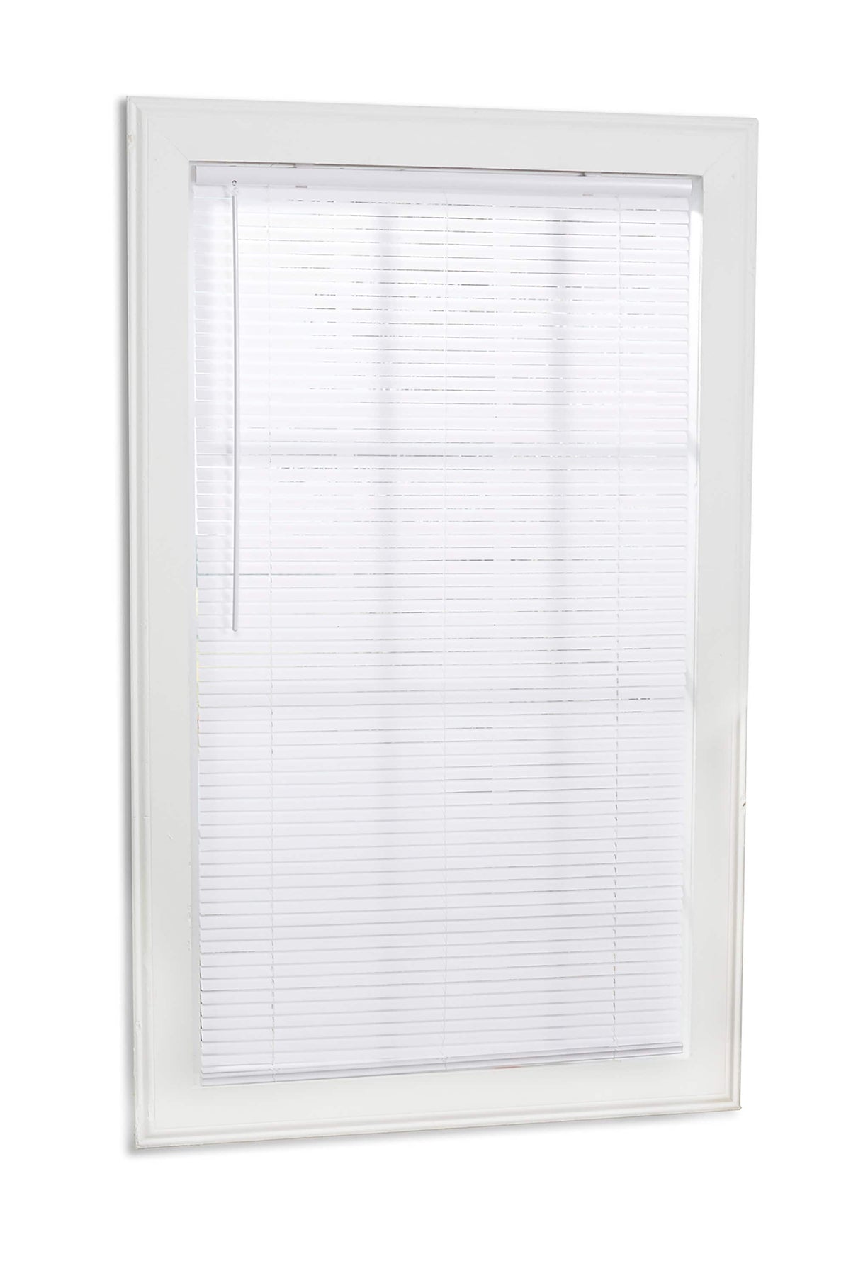 Cordless White Vinyl Room-Darkening Mini Blinds, 35 x 64-in