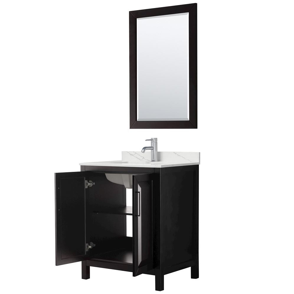 Wyndham Collection Daria 30-in Dark Espresso Single Sink Bathroom Vanity with White Carrara Marble Top, Mirror Included