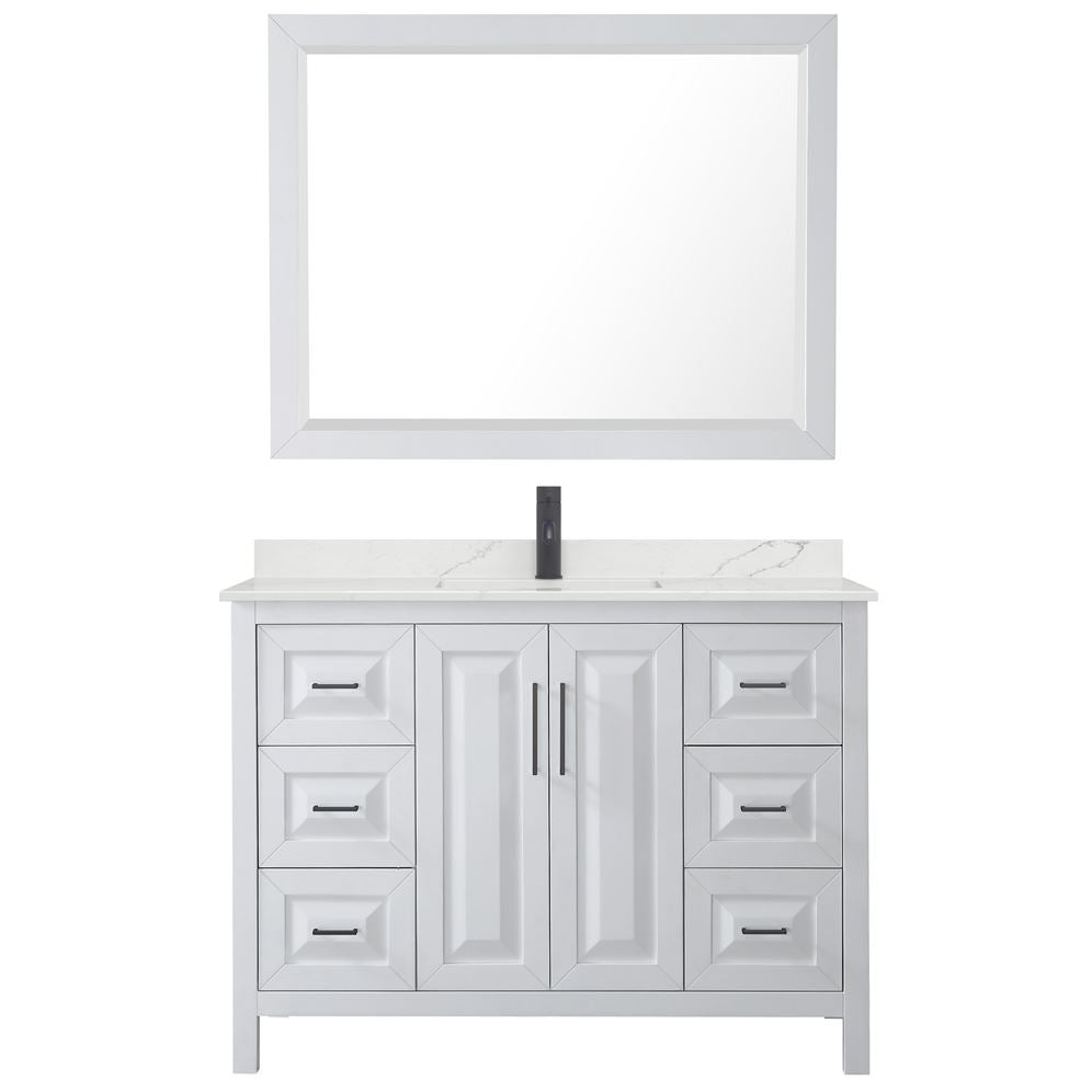 Wyndham Collection Daria 48-in White Single Sink Bathroom Vanity with White Carrara Marble Natural Marble Top (Mirror Included)